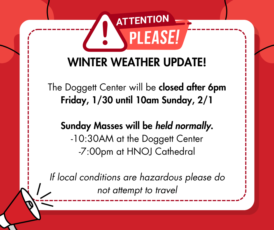 5:30pm Mass Thursday & Friday @ 1410 Hillsborough St (Adoration & Confession begins @ 5pm)